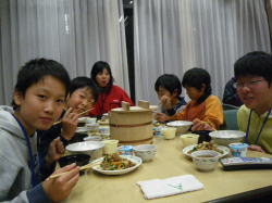 釜飯当番の2人が、みんなの前で作業の感想を発表しています。 思いのほか大変だったようで、煙で目が痛いのを我慢しながら取り組んだようですね。 昔の人は、これを朝、昼、晩やっていたのですから、米を一粒残らず食べることをとても大切にしていたのですね。 |