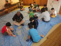 ぼくは、9月1日にフリープログラムをやりました。ぼくは、ゴットアイというものを作りました。さいしょは木を切ります。足でぼうをおさえ、切ります。力を入れないと切れないのでつかれました。次に、糸を使ってぼうをまきつけます。次の、1回ずつまいてほかのぼうにうつすというところがすごくむずかしかったです。30分くらいかかってできました。先の方にもういちど切りこみを入れて、かざりをつけたら完成です。つくりおわった時はつかれたけど、とってもうれしかったです。また、とってもたのしいフリープログラムで、竹笛やはし、けしごむスタンプを作りたいです。