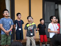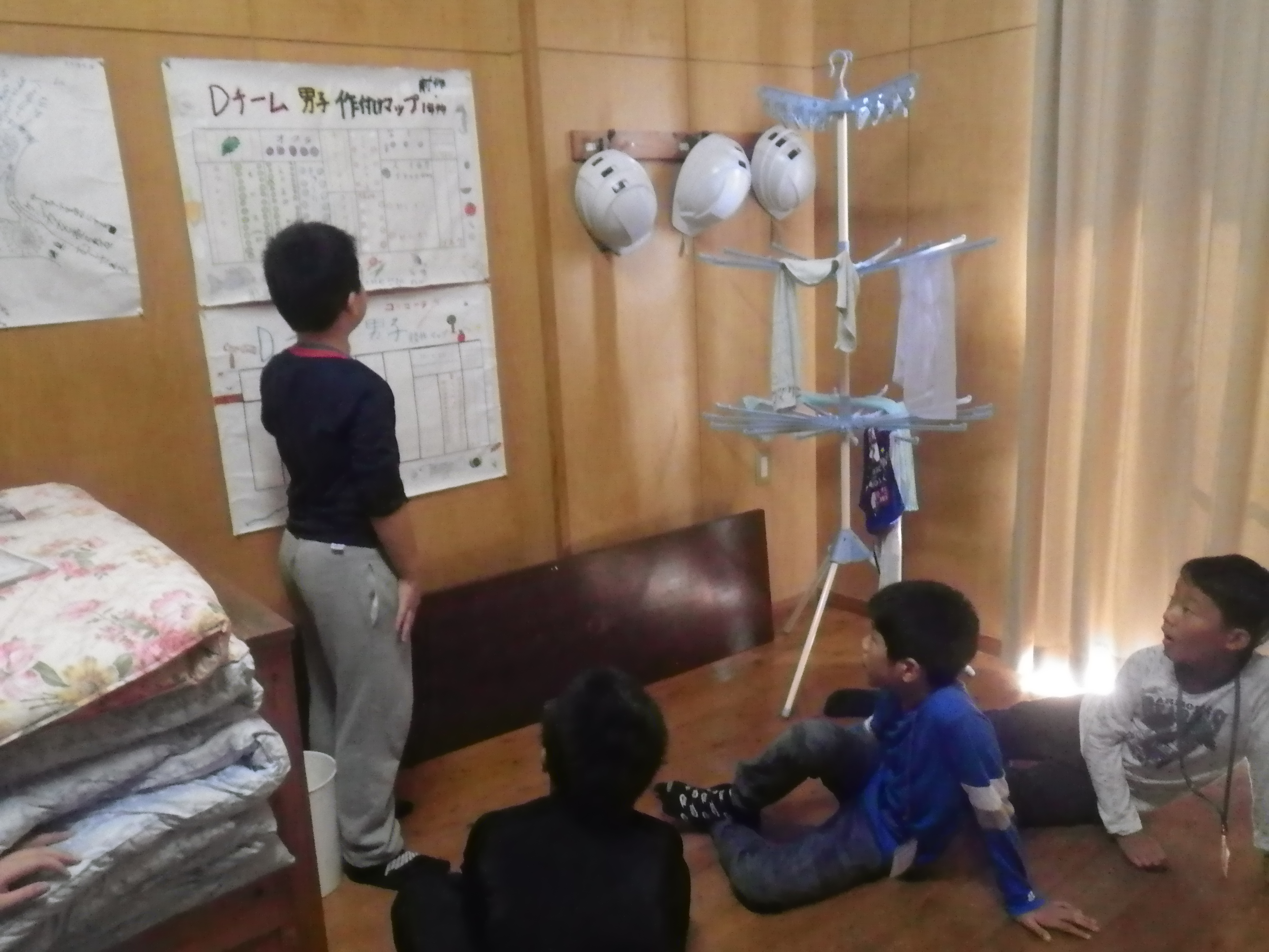 ぼくが今回印象に残ったことは、土曜日にテントに寝る予定だったけど金曜日に塾に来た時にかぜをひいてしまい、テントは朝方寒くなるからテントではなく研修室で寝ることになりました。本当は、テントで寝たかったけど、かぜがとてもひどく、のども赤くて、鼻水もでてたので、とても悲しかったです。でも、朝起きると熱は下がっていたので良かったです。でも、チーム農園と共同農園のときから、だんだんせきがひどくなってきました。でも無事に終わりました。チーム農園ではカブとサンチュを植えました。カブは3列条まきで植えて、水やりはせんりょくなしでやりました。サンチュは苗を30センチ間をあけておいていきました。そして、水やりはせんりょくありでやりました。共同農園では、ネギを植えました。親子大会はとても楽しかったので良かったです。