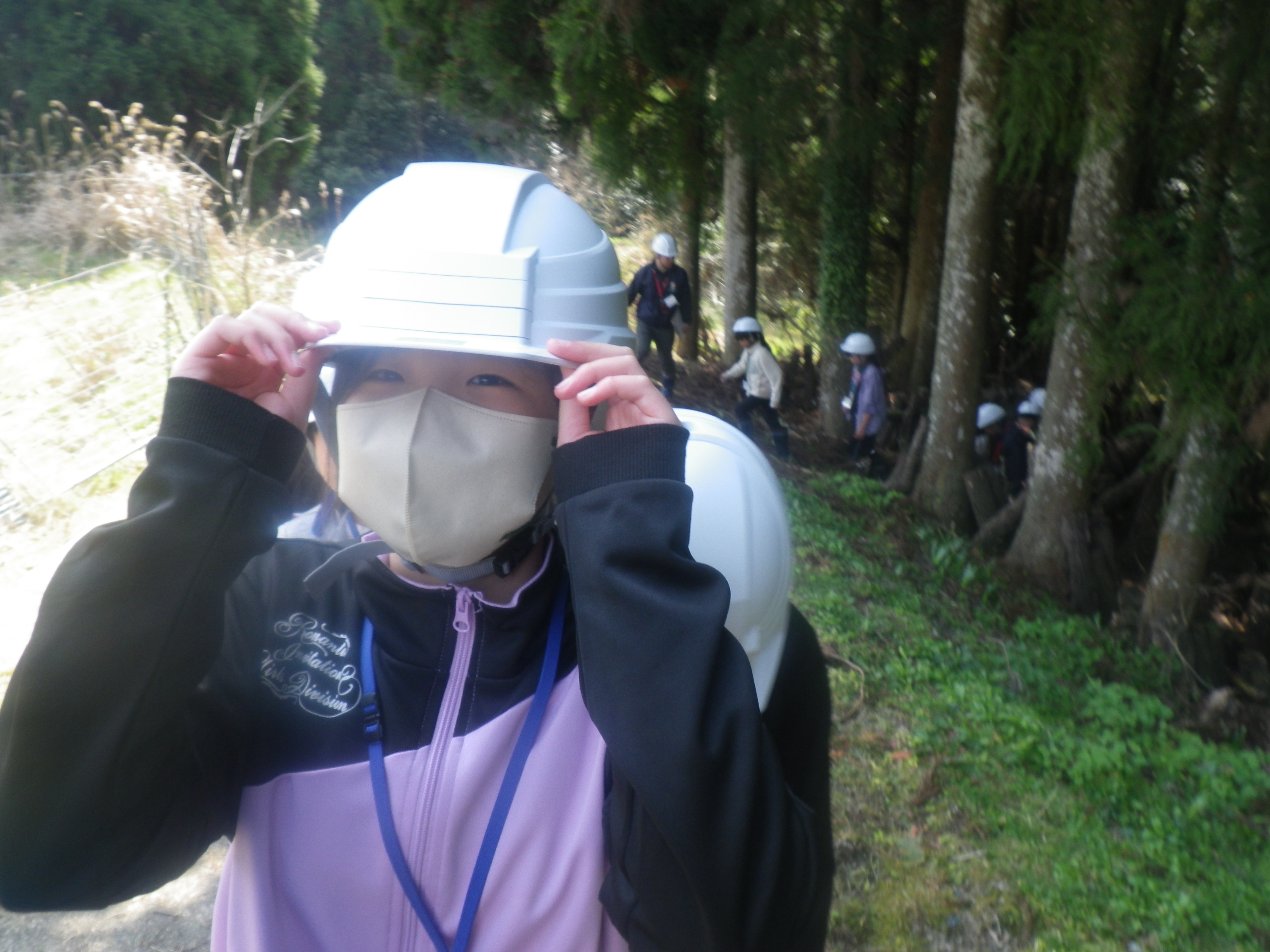 シイタケ圃場見学シイタケを興味津々な様子で見ていました!