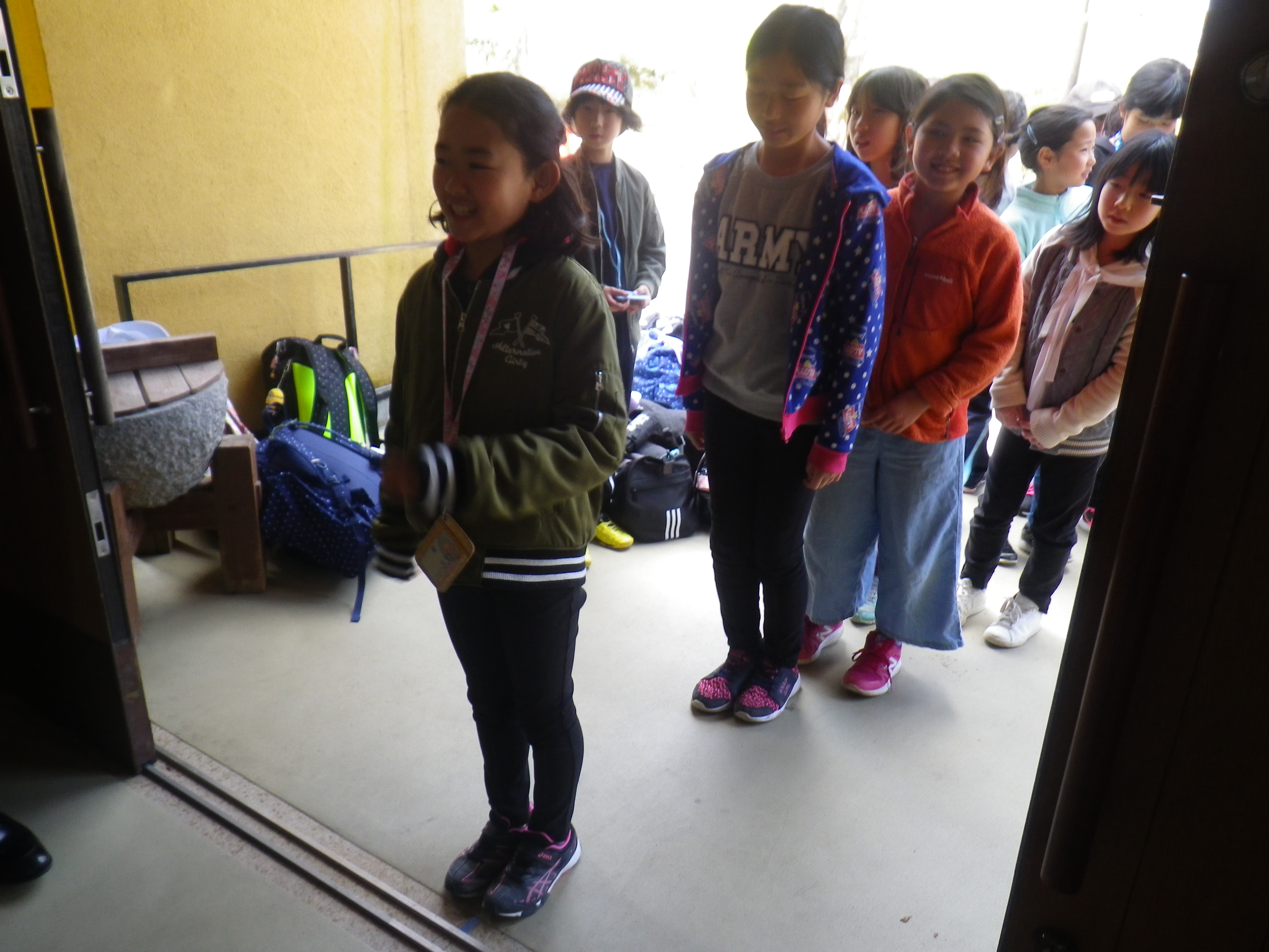 塾舎に向かって大きな声で挨拶