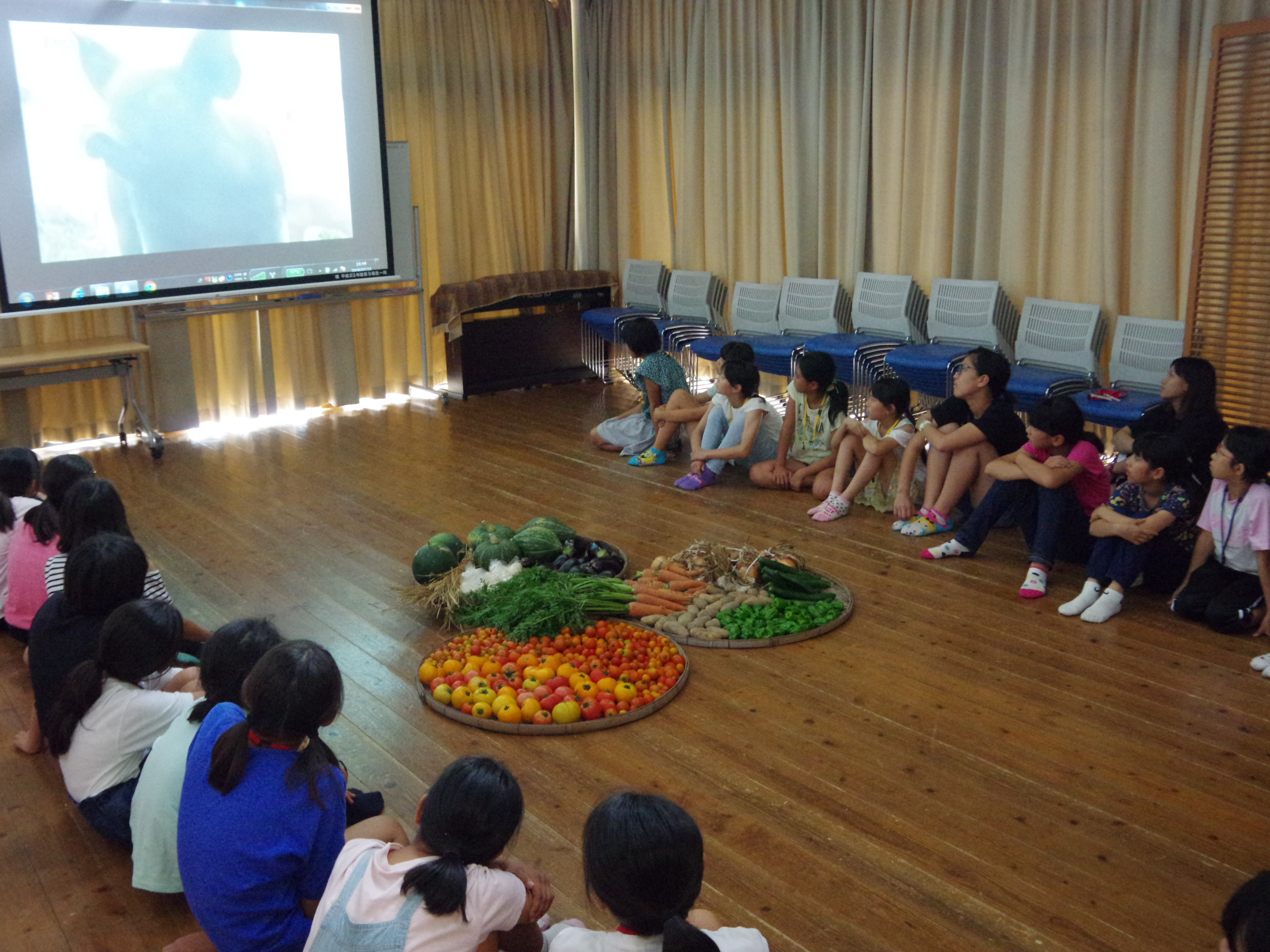 ![]() 共同農園で採れた野菜を囲んでの感謝会です |
