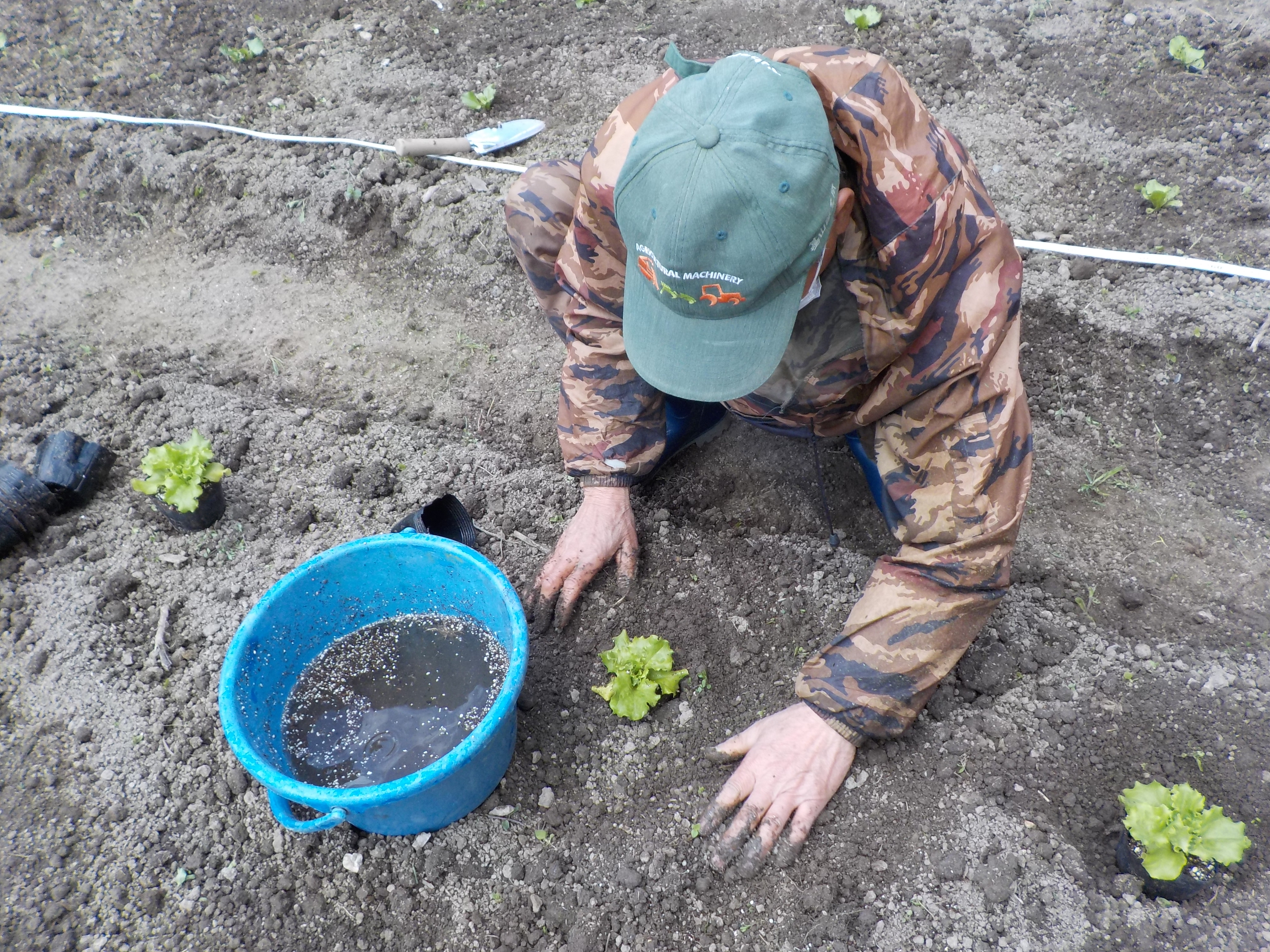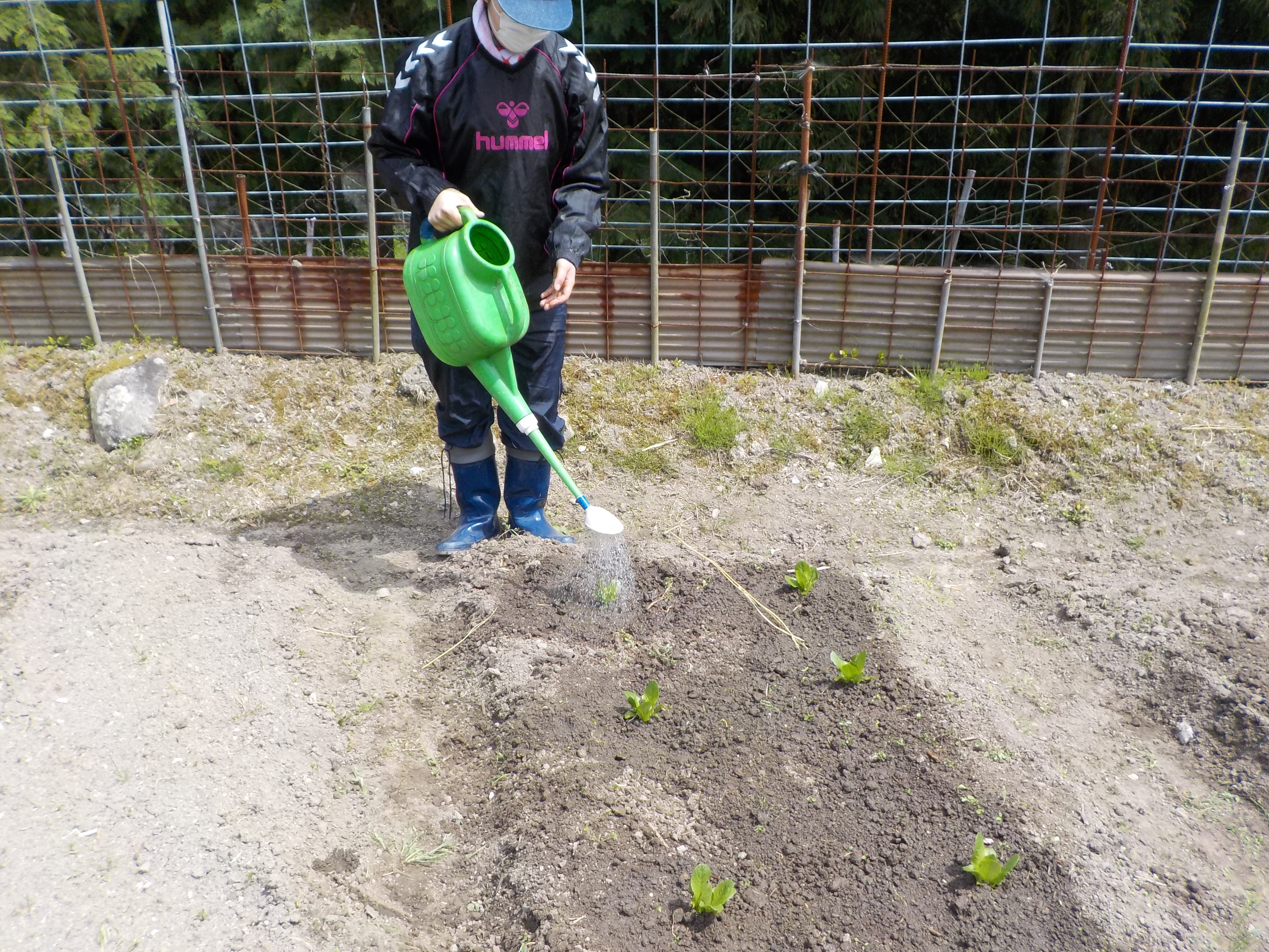 今回は、ジャガイモの土寄せとレタスの定植を行いました。 |